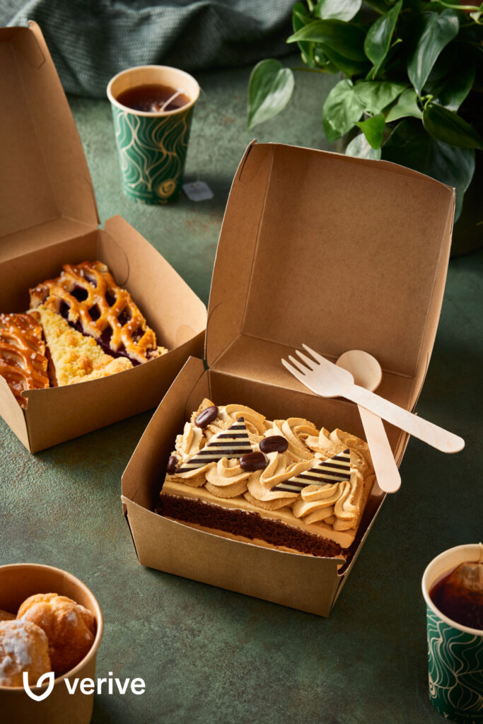 Mit Verive bieten wir Ihnen ein stimmiges Konzept für ein Rundum-Nachhaltigkeits-Erlebnis: umweltfreundliche Verpackungslösungen, passendes Einweggeschirr, nachhaltige Materialien und ein Design, das Ihre Botschaft glaubwürdig transportiert. So zeigen Sie Ihren Kund:innen, dass Nachhaltigkeit bei Ihnen nicht am Tellerrand endet.