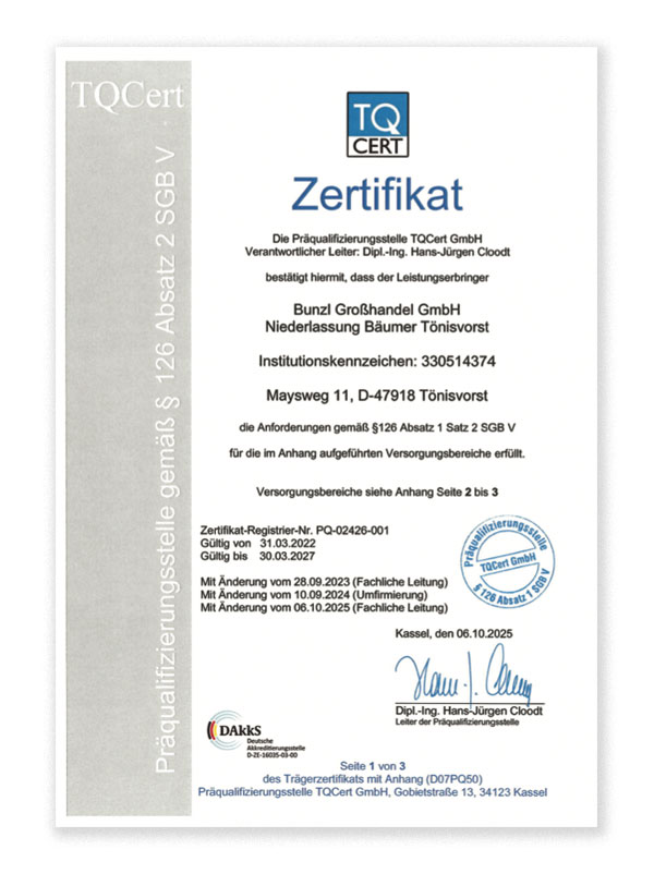 Wir sind präqualifiziert für PQS-Hilfsmittel. Diese Präqualifikation ist Voraussetzung für die Rechnungsstellung von Rezepten für medizinische Hilfsmittel an Krankenversicherer. Dies ist ein wichtiges Zertifikat für uns, da wir Inkontinenzpflege – für Kassen- und Privatpatienten in Alten- und Pflegeheimen anbieten.