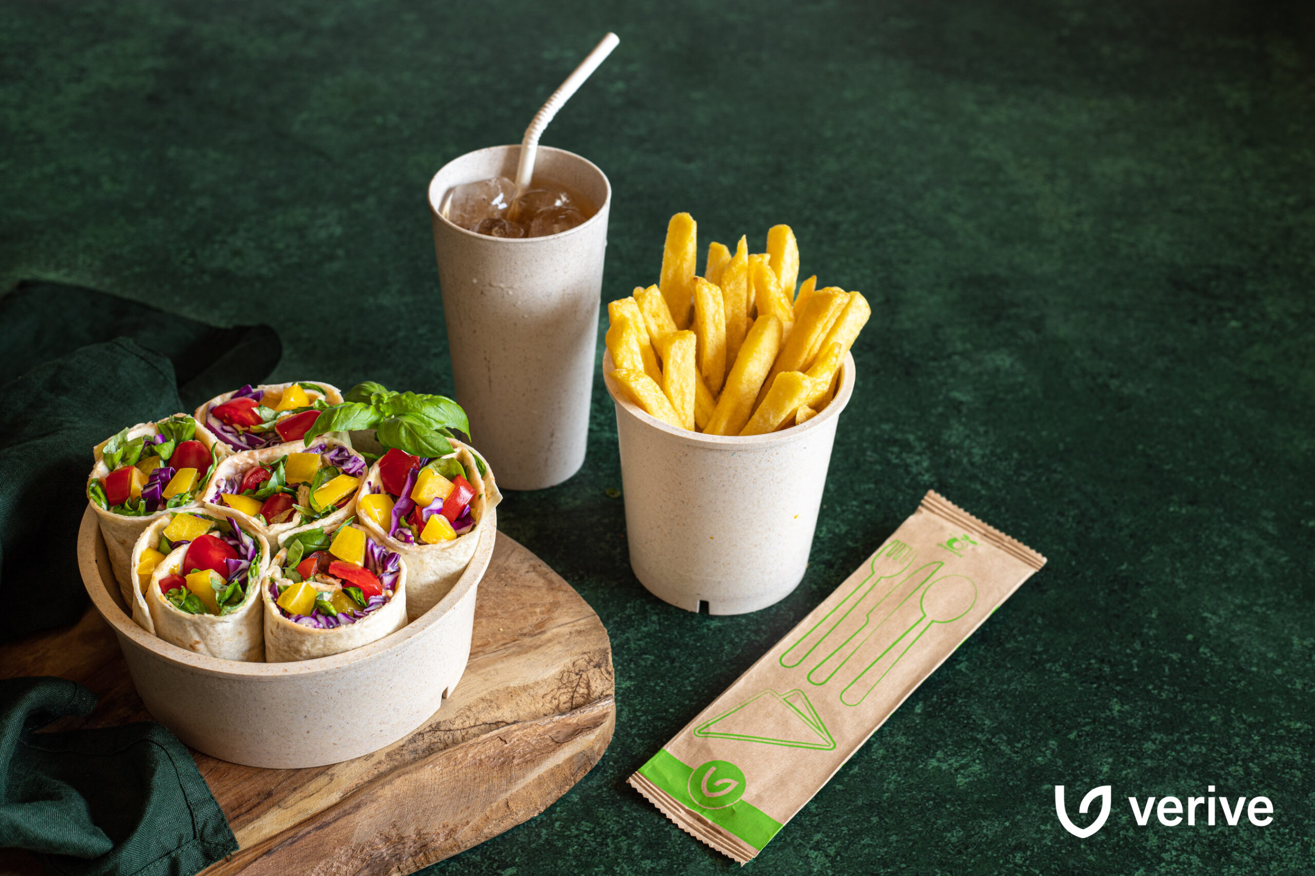 Mit Verive bieten wir Ihnen ein stimmiges Konzept für ein Rundum-Nachhaltigkeits-Erlebnis: umweltfreundliche Verpackungslösungen, passendes Einweggeschirr, nachhaltige Materialien und ein Design, das Ihre Botschaft glaubwürdig transportiert. So zeigen Sie Ihren Kund:innen, dass Nachhaltigkeit bei Ihnen nicht am Tellerrand endet.